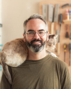 Este es Javi. Descrito en 3 palabras: granaíno, emprendedor y cariñoso. Estudió Ingeniería de Edificación en la UGR y cuando descubrió el mundo de la madera se enamoró. En 2018 empezó a hacer productos de madera (lámparas, decoración, …). Las personas que confiaban en lo que hacía fueron aumentando, así también fue elevándose el nivel de los proyectos, hasta el día de hoy. Ahora hace grandes proyectos de carpintería para clientes, diseñador@s y arquitect@s. Todo con su empresa Reviverdes.