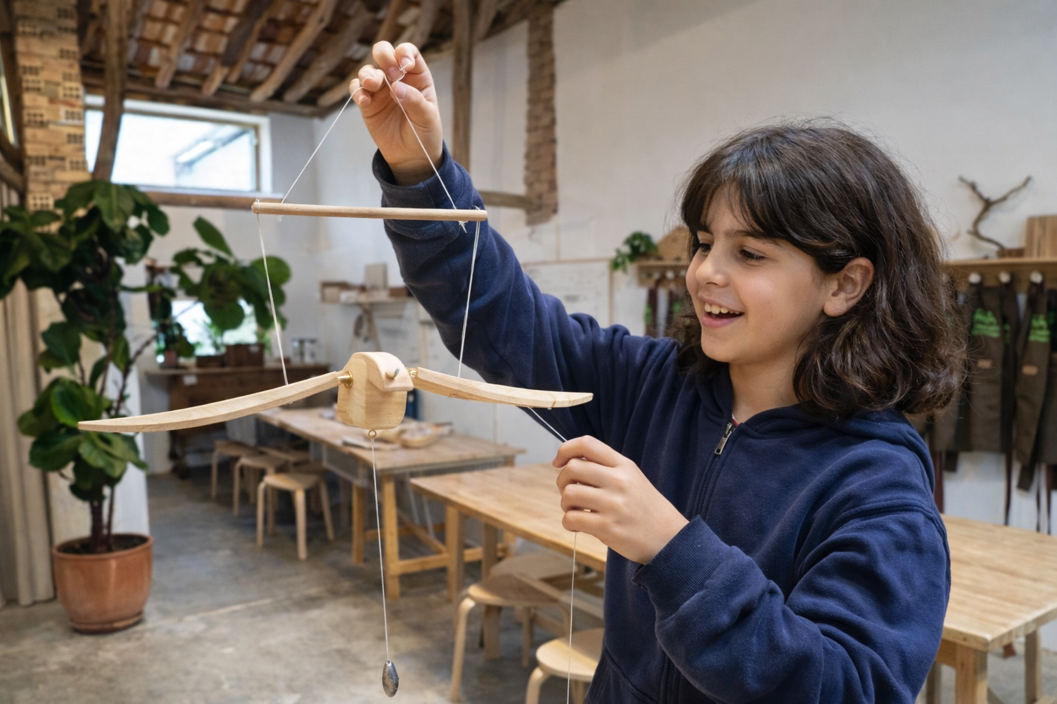 ¿Te gustaría aprender a hacer un «móvil de madera» para colgar y ver cómo cobra vida moviendo sus alas?